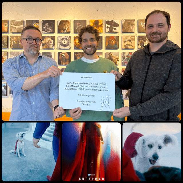 Hi r/movies! We’re Stéphane Nazé (VFX Supervisor), Loïc Mireault (Animation Supervisor), and Kevin Sears (CG Supervisor), part of the Framestore team behind Superman's VFX. Here to answer your questions! If you want to know more about us here are our credits