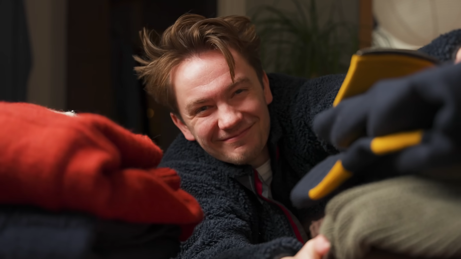 Okay, you want to see the heaviest sweater of the entire list? It’s an absolute tank. One second. It’s going to take me like an hour to put it on. There’s no front or back on this. So, there’s no label. You could put it on either way.